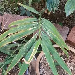 紫背栉花竹芋,学名:Ctenanthe oppenheimiana (E. Morren) K. Schum.,别称:银羽栉花竹芋、紫背锦竹芋、紫背箭羽竹芋,竹芋科栉花芋属多年生草本。株高30~60cm,地下有根茎,多丛生。叶长椭圆形,叶缘稍有波浪形起伏状,叶面七彩斑斓。