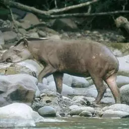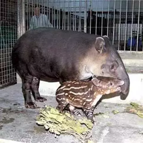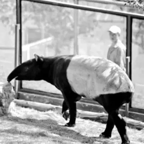 亚洲貘:亦称马来貘,是貘类中最大的一种,体长为1.8-2.5米,肩高90-120厘米,尾长5-10…