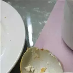 馒头切成 4块 鸡蛋内加入 少量淀粉和盐