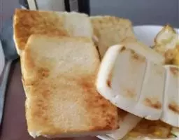 馒头片裹上鸡蛋煎制出来又松软又美味。