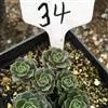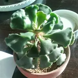 肉质叶排列成标准的莲座状生于短缩茎上,倒卵匙形,被白粉。生长旺盛时其叶盘直径可达20厘米, 叶片匙形, 稍厚, 顶端有小尖。