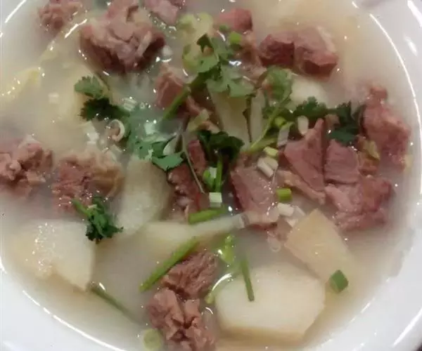 山药炖羊肉是一道菜品,由羊肉、山药和香菜三者搭配食用,做法简单,适宜于体虚胃寒、四肢冰冷、慢性哮喘、贫血以及阳气不足的人。