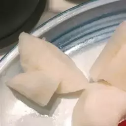 1、每块豆腐切为四件,放碟上,洒?茶匙盐于豆腐上,隔水蒸约10分钟。