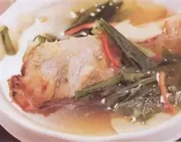 滑豆腐2块、鲜冬菇(切片)3只、珍珠笋数条、红萝卜片数片、菜心数棵、上汤1/2(汤)碗