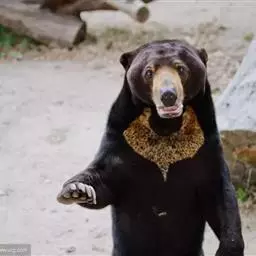 马来熊,是食肉目熊科马来熊属哺乳动物。体胖颈短,眼睛和耳朵小;头部短圆;全身乌黑光滑;鼻唇周为棕黄色,…
