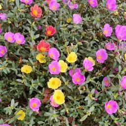 大花马齿苋的品种较多,通常有妃红、稼红、大红、深红、紫红、白色、雪青、淡黄、深黄等颜色。它原产南美巴西和阿根廷等地,中国各地已广泛栽培。楼房居室养性,利用其耐早耐燥、盐生的特点。盆栽美化居室阳台,窗台。菇茎和托垂于盆外。向阳而开,如锦似绣,中午最盛,一朵朵使劲地张开,尽情地享受太阳给予的温暖,为居室增添无限情趣,别具一格。