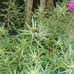 大花马齿苋一年生草本,高10-30厘米。茎平卧或斜升,紫红色,多分枝,节上丛生毛。叶密集枝端,较下的叶分开,不规则互生,叶片细圆柱形,有时微弯,长1-2.5厘米,直径2-3毫米,顶端圆钝,无毛;叶柄极短或近无柄,叶腋常生一撮白色长柔毛。