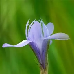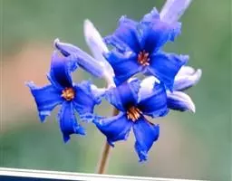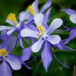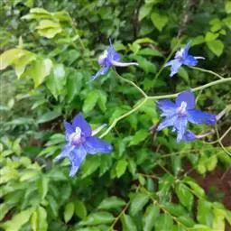 花3-6朵,近直立;苞片线状深裂;花梗长2-4厘米;萼片开展,蓝紫色,罕为白色,卵形,长1.5-2厘米,宽0.9-1.2厘米,顶端钝;花瓣瓣片钝圆形,长3-5毫米,具短距,距长3-5毫米,末端直或微弯;雄蕊比萼片短,花药黄色;退化雄蕊狭椭圆形,白膜质,长5-6毫米,边缘皱曲;心皮5,被腺状柔毛。
