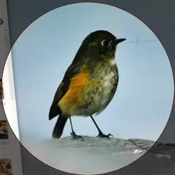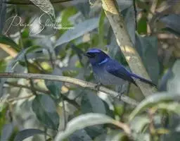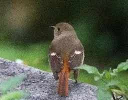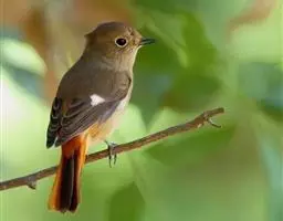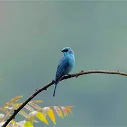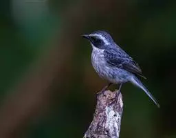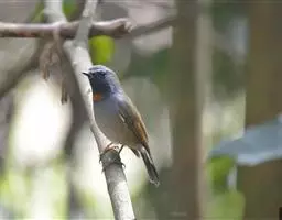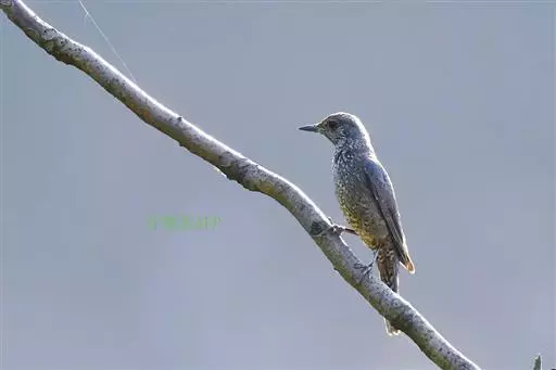 雄性幼鸟(采自8月间) 上体淡蓝,自额至上背各羽端部具有棕白色点斑,并缘以黑端;下背和腰各羽均具白端,并贯以黑斑;翅上各羽、尾上覆羽以及尾羽均具棕或棕白色羽端。下体与雌性成鸟的秋羽略同,但下腹或全部或仅中央为棕白色而微具黑斑。虹膜暗褐色,嘴、脚黑色。