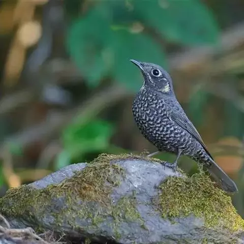 雄性成鸟(夏羽) 上体自额至上背褐灰,隐约具有黑斑;下背至尾上覆羽灰蓝,各羽具白端及黑褐色次端斑;两翅和尾与雄鸟相似,但较苍淡,翅上的覆羽和飞羽均缀以白缘;眼先污白;颊和耳羽暗褐,而缀以白色细点。颏和喉及喉侧等均白或棕白色,各羽均缘以圈状黑斑;胸以下略同,但这些圈状斑却转为横斑;尾下覆羽棕色更著。 喉的中央有时并无斑杂,但此部并不成为一个块斑状。