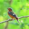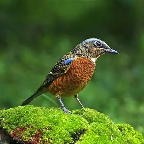 雄性成鸟(夏羽) 上体自额至尾上覆羽,头和颈的两侧,下体自颏至胸等部均辉蓝色;眼先近黑;翅上的小覆羽蓝色,余羽均黑褐,而外狭缘以蓝色,大覆羽和次级飞羽大多微具白端;尾羽黑,羽缘带蓝。下体自胸部以下纯栗红色;腋羽亦同色。至秋。自头顶至上背各羽的端部转为黑褐色,并贯以黑褐色横斑;下背至尾上覆羽,黑斑较微,而具棕白色羽端;翅上的内侧覆羽与下背同色,余羽黑褐,而具明显的棕白色羽端。下体自颏至胸均蓝,各羽端部棕白,并具黑褐色次端斑;后面栗红色各羽均具棕白或白色羽端,并大都更贯以黑褐色次端斑,有的羽还带些蓝色。
