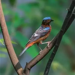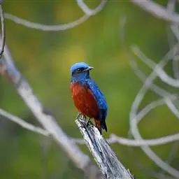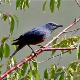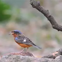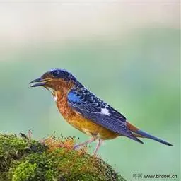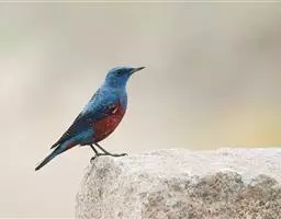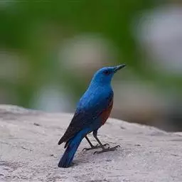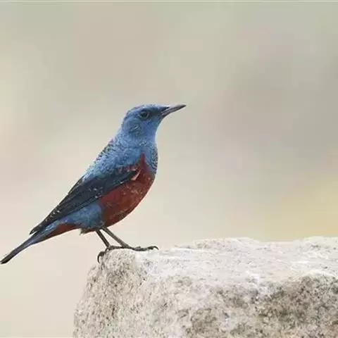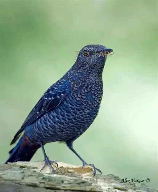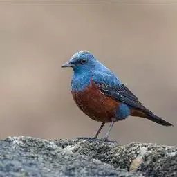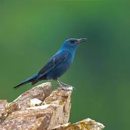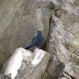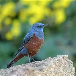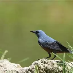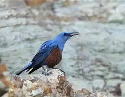 蓝矶鸫(学名:Monticola solitarius)是中等体型的青石灰色矶鸫,雄鸟上体几乎纯蓝色,两翅和尾近黑色;下体前蓝后栗红色。雌鸟上体蓝灰色,翅和尾亦呈黑色;下体棕白,各羽缀以黑色波状斑。夏季时常栖息于多岩石的山地或海岸上。冬季时南迁,偶见于城墙、古塔、废墟等处。它们取食或由高处直落地上捕取,或骤然飞出在空中捕食飞虫。雄鸟在繁殖期中善于鸣叫,鸣声富有音韵,十分动听,繁殖期在每年的4-7月,巢置于山腰的岩隙间,形似碗状。巢基以苔藓、枝条、树皮等所造成,内垫以细草,须根等。每窝产4枚卵,淡蓝色,有时在钝端处缀以红褐色细点。主要以昆虫为食,如蝼蛄、蝗虫等,也吃蜘蛛。分布广泛,为留鸟及候鸟,见于欧亚大陆、中国、菲律宾、东南亚、马来半岛、苏门答腊及婆罗洲。是马耳他的国鸟