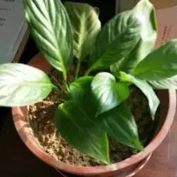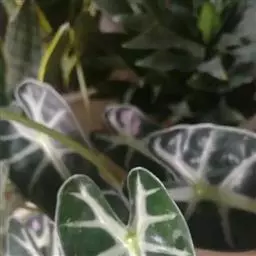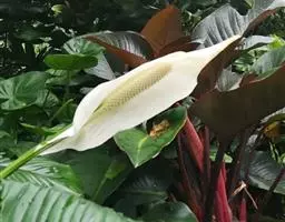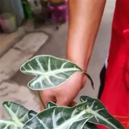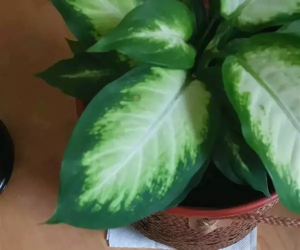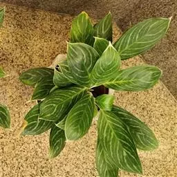 花叶万年青(学名:Dieffenbachia picta Lodd. )又名黛粉叶,为常绿灌木状草本,茎干粗壮多肉质,株高可达1.5米。叶片大而光亮,着生于茎干上部,椭圆状卵圆形或宽披针形,先端渐尖,全缘,长20-50厘米、宽5-15厘米;宽大的叶片两面深绿色,其上镶嵌着密集、不规则的白色、乳白、淡黄色等色彩不一的斑点,斑纹或斑块;叶鞘近中部下具叶柄。花梗由叶梢中抽出,短于叶柄,花单性,佛焰花序,佛焰苞呈椭圆形,下部呈筒状。其园艺品种甚多,不同的品种叶片上的花纹不同。
