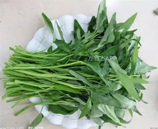 蕹菜 一年生草本,蔓生或漂浮于水。茎圆柱形,有节,节间中空,节上生根,无毛。