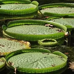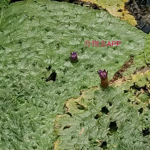 一年生大型 水生草本。沉水叶箭形或椭圆肾形,长4-10厘米,两面无刺;叶柄无刺;浮水叶革质,椭圆肾形至圆形,直径10-130厘米,盾状,有或无弯缺,全缘,下面带紫色,有短柔毛,两面在叶脉分枝处有锐刺;叶柄及花梗粗壮,长可达25厘米,皆有硬刺。