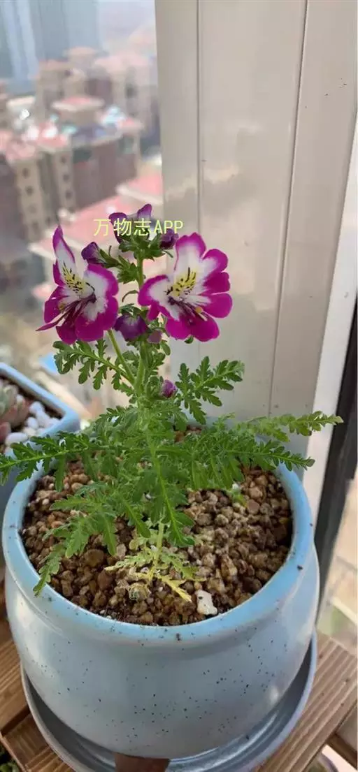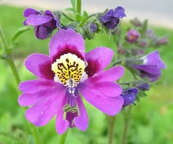 蛾蝶花1-2年生草本,全株疏生有微粘的腺毛,裂片全缘或成粗齿。叶互生,1-2回羽状全裂,高50-100厘米。