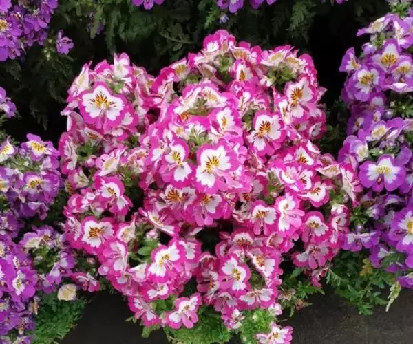 蛾蝶花由于其叶型优美,花色艳丽,花型似飞舞的蛾蝶,是极好的室内盆栽品种,加之花量大,性强健耐旱,是“五一”期间布置早春花坛的草花新秀。高生品种做切花或花境用花。
