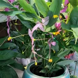 金嘴蝎尾蕉:芭蕉科,蝎尾蕉属多年生草本植物。株高可达6米。叶片长圆形,叶面绿色,叶背亮紫色;顶生花…