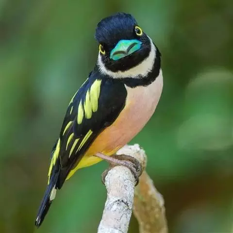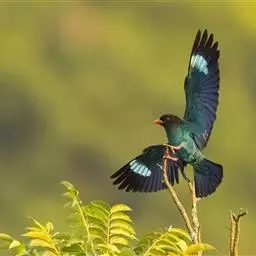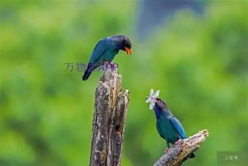 三宝鸟,是佛法僧目佛法僧科三宝鸟属中小型攀禽。成鸟通体为富有光泽的墨蓝绿色,…