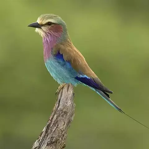 蓝胸佛法僧中型鸟类,体长31~33厘米,通体淡蓝绿色。翅膀长而宽,除栗色背羽外大部分为蓝色。…