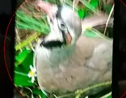 虹膜暗褐色,嘴朱红色,上嘴先端黑色,脚、趾朱红色,爪黑色。