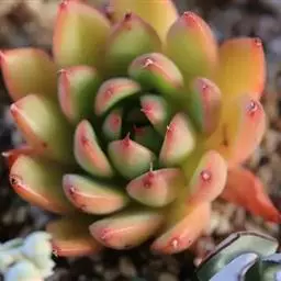 红艳辉又名红辉炎,景天科拟石莲花属的多肉植物。是锦晃星的杂交品种。株型呈莲座状,秋天会变红,很美丽…