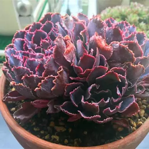 黑王子锦(Echeveia ‘Black Prince’ f. variegata)是景天科拟石莲花属的多年生肉质草本植物,是多肉植物的一种,为黑王子的锦化品种,较为稀有。