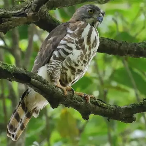 鹰雕,是隼形目鹰科鹰雕属大型猛禽,俗称熊鹰、赫氏角鹰。其上体暗褐色,头后冠羽常竖立起,…
