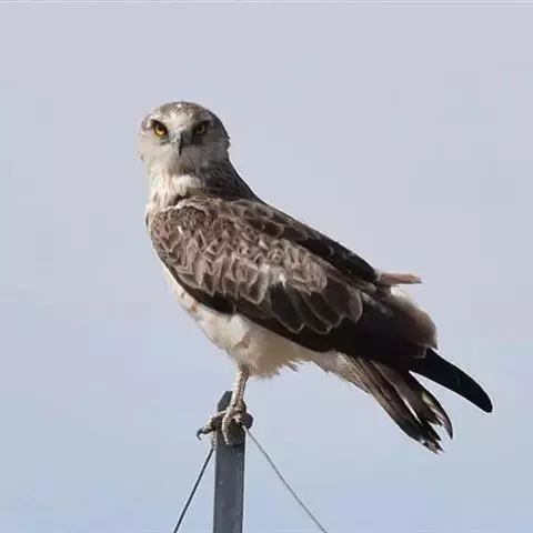 栗鸢:又叫红老鹰,为中型猛禽。体长36-51厘米。虹膜为褐色或红褐色,头、颈、胸和上背白色,…