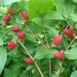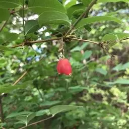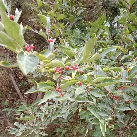 郁香忍冬 苦糖果(Lonicera fragrantissima Lindl. et Paxt. subsp.standishii (Carr.) Hsu et H. J. Wang)该亚种与郁香忍冬主要有以下两点明显的区别:一小枝、叶柄(也许还包括叶下面脉上)常有糙毛,而郁香忍冬无毛;二叶较狭长,卵状矩圆形或卵状披针形,而郁香忍冬的叶圆卵形、卵形至卵状矩圆形。分布于中国陕西和甘肃的南部、山东北部、安徽南部和西部、浙江(定海、杭州、天目山)、江西(修水)、河南、湖北西部和东南部、湖南(慈利)、四川西部、东北部和东南部及贵州北部和西部(威宁),上海、杭州、武汉、旅大等地有栽培。生长在海拔100-2000米(四川西部达2700 米)的向阳山坡林中、灌丛中或溪涧旁。