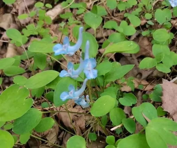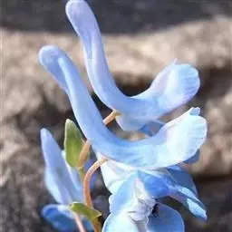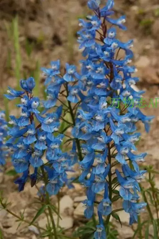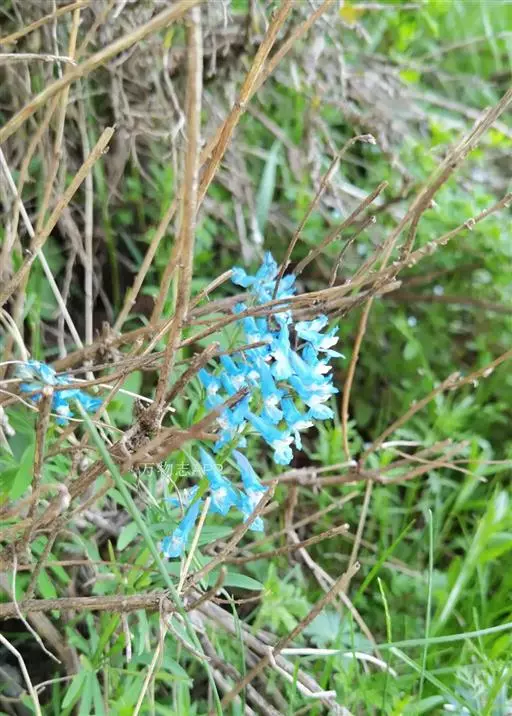 花:总状花序疏生5-15花。苞片披针形或狭卵圆形,全缘,有时下部的稍分裂,长约8毫米。花梗花期长约1厘米,果期长约2厘米。花紫红色。萼片小,早落。外花瓣宽展,具齿,顶端微凹,具短尖。上花瓣长(1.5-)2-2.2厘米,瓣片与距常上弯;距圆筒形,长1.1-1.3厘米;蜜腺体约贯穿距长的1/2,末端钝。下花瓣具短爪,向前渐增大成宽展的瓣片。内花瓣长8-9毫米,爪长于瓣片。柱头近圆形,具较长的8乳突。