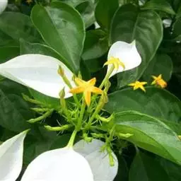 玉叶金花,为茜草科玉叶金花属攀援灌木;叶对生或轮生,卵状;萼片叶状雪白色,聚伞花序顶生,花冠黄色,…