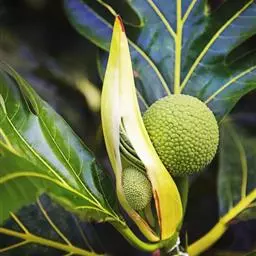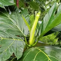 波罗蜜(学名:Artocarpus heterophyllus Lam.)是桑科波罗蜜属植物,常绿乔木,高10-20米,胸径达30-50厘米;托叶抱茎环状,遗痕明显。叶革质,螺旋状排列,椭圆形或倒卵形,长7-15厘米或更长,宽3-7厘米,先端钝或渐尖,基部楔形,成熟之叶全缘。花雌雄同株,花序生老茎或短枝上,雄花序有时着生于枝端叶腋或短枝叶腋。聚花果椭圆形至球形,或不规则形状,幼时浅黄色,成熟时黄褐色,表面有坚硬六角形瘤状凸体和粗毛;核果长椭圆形。花期2-3月。