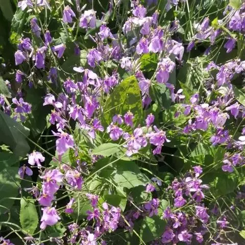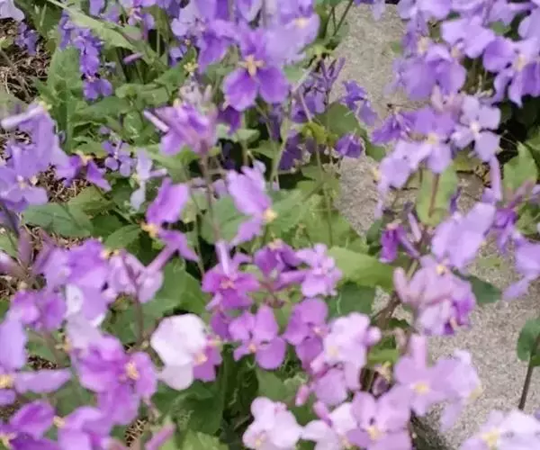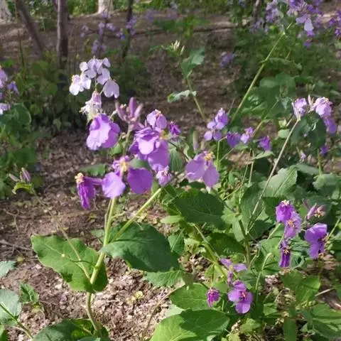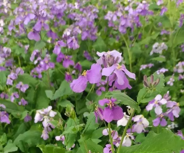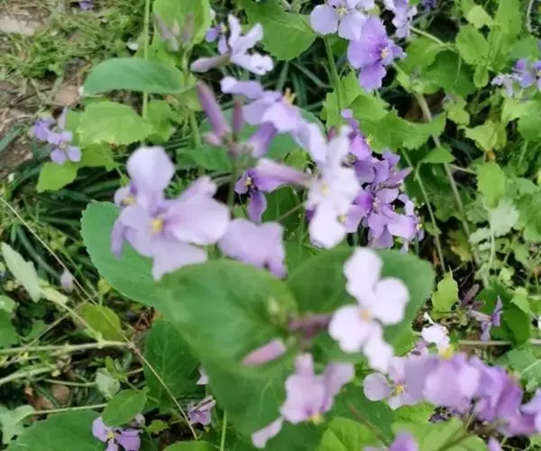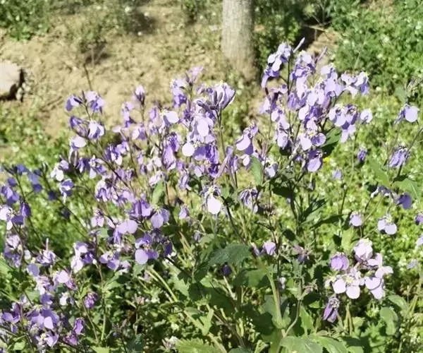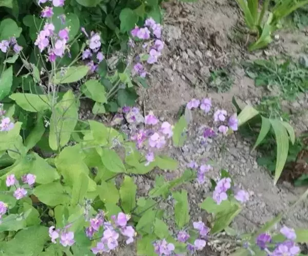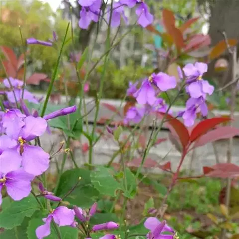 紫色的诸葛菜花 田间管理间苗与补苗:直播苗可在苗高8-10厘米时间苗,株距10-15厘米。移植苗在移栽1周后检查移栽苗成活情况,如有缺苗要及时补栽。