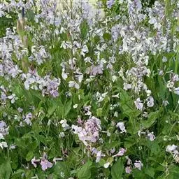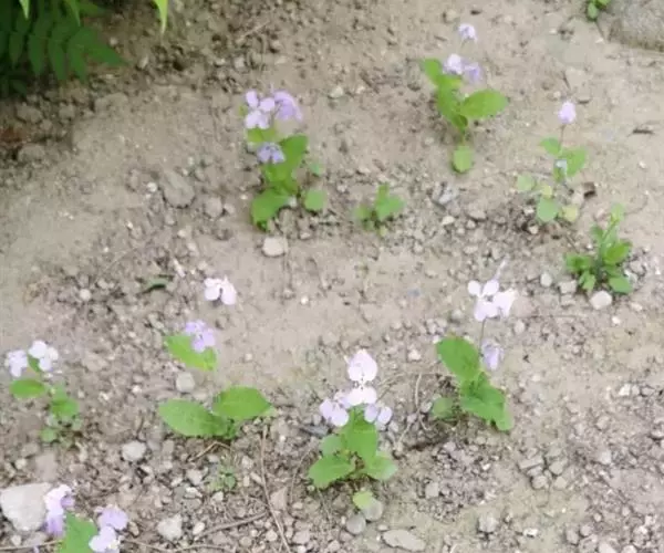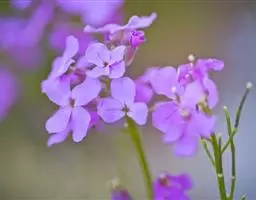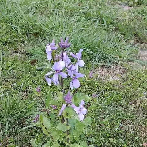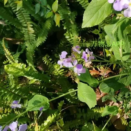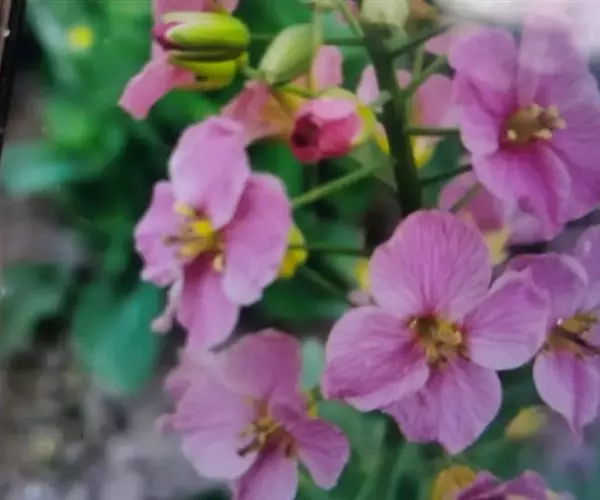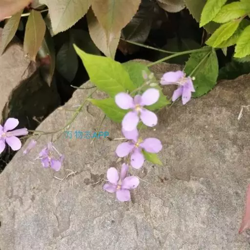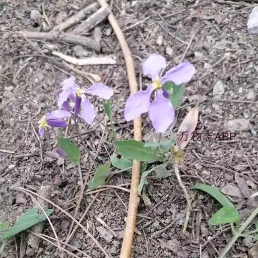 花紫色、浅红色或褪成白色,直径2-4厘米;花梗长5-10毫米;花萼筒状,紫色,萼片长约3毫米;花瓣宽倒卵形,长1-1.5厘米,宽7-15毫米,密生细脉纹,爪长3-6毫米。长角果线形,长7-10厘米。具4棱,裂瓣有1凸出中脊,喙长1.5-2.5厘米;果梗长8-15毫米。种子卵形至长圆形,长约2毫米.稍扁平,黑棕色,有纵条纹。花期4-5月,果期5-6月。