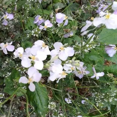 诸葛菜(学名:Orychophragmus violaceus (L.) O. E. Schulz)是十字花科,诸葛菜属一年或二年生草本植物,高可达50厘米,无毛;茎直立,基生叶及下部茎生叶大头羽状全裂,顶裂片近圆形或短卵形,侧裂片卵形或三角状卵形,叶柄疏生细柔毛;花紫色、浅红色或褪成白色,花萼筒状,紫色,花瓣宽倒卵形,密生细脉纹,长角果线形,种子卵形至长圆形,黑棕色,4-5月开花,5-6月结果。