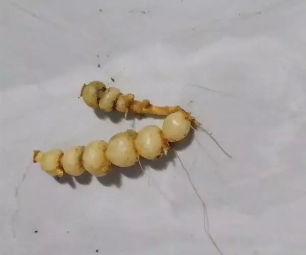 斗米虫为锈色粒肩天牛(Apriona swainsoni Hope)的幼虫,锈色粒肩天牛主要危害槐树Sophora japonica,有“国槐杀手”“国槐的毁灭性害虫”之称,也是豆科Leguminosae云实 Caesalpinia decapetala 的主要蛀干害虫,对云实的生长发育有着极大的威胁。