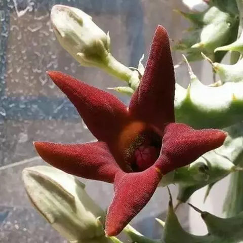 大花犀角是夹竹桃科犀角属的多年生肉质草本植物,茎基部分枝,有齿状突起,灰绿色,形如犀牛角,花大,…
