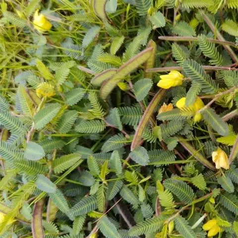 豆茶决明(学名:Cassia pumila Lam.)是豆科,决明属多年生亚灌木状披散草本植物,高可达75厘米,枝条、叶柄、叶轴疏柔毛。小叶对生,线状镰形,顶端有小凸尖,基部近圆形;托叶线状锥形,花腋生,总状花序;总花梗顶端有小苞片;萼片卵状长圆形,顶端渐尖,花瓣黄色,卵形,花药长圆形;子房无柄,荚果扁平而直,8-9月开花;10-12月结果。