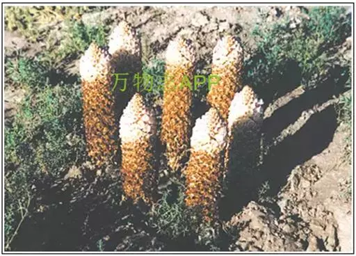 本品茎呈细长圆柱形,长5~27cm,直径2~6mm。表面灰棕色,具多数突起的残留叶基,有明显的纵棱线。叶多脱落。破碎或卷曲,灰绿色。圆锥花序穗状,小花白色或粉红色,花梗长约5mm。体轻,质脆,易碎。气微,味酸。