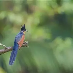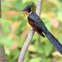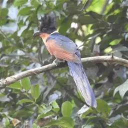 红翅凤头鹃:体长约38厘米,顶冠及凤头黑色,具显眼的直立凤头,背及尾黑色而带蓝色光泽,翅栗红色,…