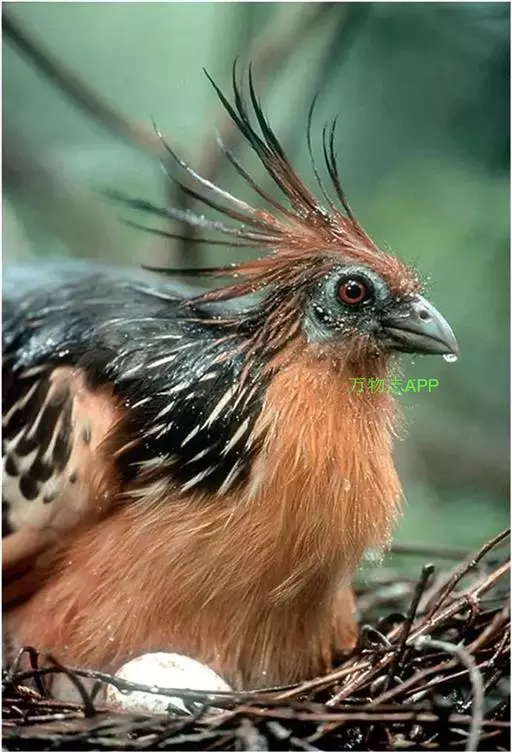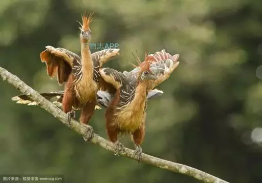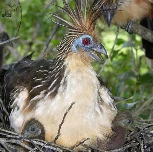 巢建好后,“主人”便交配产卵。麝雉的卵比鸡蛋要小,呈奶白色,在钝头有些小红点。每只雌麝雉一般产2-4枚卵,也有一些产6枚,雌雄麝雉轮流孵化,大约28天后,雏鸟就破壳问世了。麝雉的雏鸟孵出时全身生育稀疏的羽毛,每只翅的弯曲处生有2个小爪。这些年幼的麝雉出世后一周,就能自己攀树找食物,遇敌则落水脱逃。如果双亲和“保姆”都出外觅食,它们常常会受到猴及蛇的袭击,在万不得已的情况下,幼雏便跳入巢下面的水中,尽快地游走。危险过后,它们再游回巢的下面,依靠脚和翅爪的帮助,攀上树枝,回到巢中。10个星期后,幼麝雉的翅爪自行脱落,此时,它们已经能够依靠飞行来躲避敌人了。 [1-2]