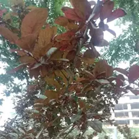 落叶乔木,高9-12米;树冠广圆形,树皮灰褐色,起伏不平;老枝紫褐色或红褐色,无毛;小枝黄红色,无毛;冬芽卵圆形,红紫色,有数枚覆瓦状排列鳞片,通常无毛,稀鳞片边缘有极稀疏毛。