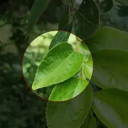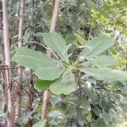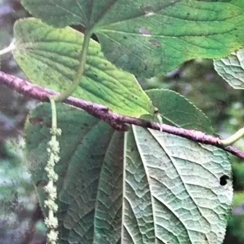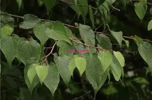 乔木,高可达30米,胸径达1.5米,全株无毛; 水青树 树皮灰褐色或灰棕色而略带红色,片状脱落;长枝顶生,细长,幼时暗红褐色,短枝侧生,距状,基部有叠生环状的叶痕及芽鳞痕。叶片卵状心形,长7-15厘米,宽4-11厘米,顶端渐尖,基部心形,边缘具细锯齿,齿端具腺点,两面无毛,背面略被白霜,掌状脉5-7,近缘边形成不明显的网络;叶柄长2-3.5厘米。