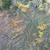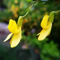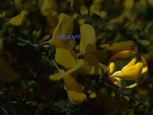 花梗单生,长8-18毫米,关节在中部以上,无毛;花萼管状,不扩大或仅下部稍扩大,长7-9毫米,宽约4毫米,常紫红色,萼齿三角形,渐尖,内侧密被短柔毛;花冠黄色,常紫红色或全部淡红色,凋时变为红色,长20-22毫米,旗瓣长圆状倒卵形,先端凹入,基部渐狭成宽瓣柄,翼瓣长圆状线形,瓣柄较瓣片稍短,耳短齿状,龙骨瓣的瓣柄与瓣片近等长,耳不明显;子房无毛。荚果圆筒形,长3-6厘米,具渐尖头。花期4-6月,果期6-7月。