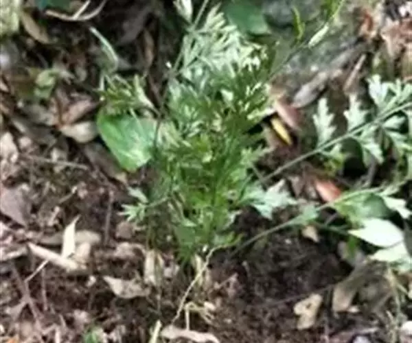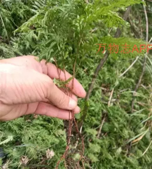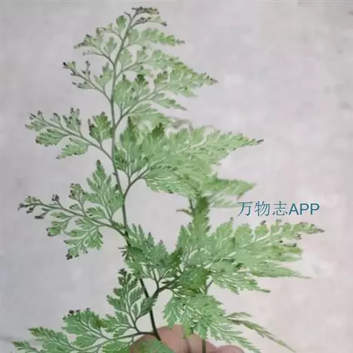 植株高60厘米 1-7 左右。根状茎长而横走,粗3毫米左右,疏被鳞片,鳞片棕色或红棕色,披针形,筛孔明显。叶散生;柄长2-30厘米,基部褐棕色,略有鳞片,向上禾杆色(有时下部略饰有棕色),光滑;叶片几和叶柄等长,宽约10厘米或过之,卵状三角形或卵状披针形,渐尖头,四回羽状细裂;羽片12-15对,互生,柄长1-2厘米,基部一对最大,长9-17厘米,宽5-6厘米,长圆披针形或三角状披针形,先端渐尖,并具羽裂尾头,三回羽裂;各回小羽片彼此接近,均为上先出,照例基部一对最大;末回能育小羽片或裂片长5-7毫米,宽1.5-2毫米,线状披针形,有不育的急尖头;末回不育裂片短而狭,线形或短披针形,短尖头;叶轴和各回育轴上面有浅沟,下面凸起,不育裂片仅有中脉一条,能育裂片有斜上侧脉和叶缘的边脉汇合。叶干后坚草质或纸质,灰绿色或绿色,遍体无毛。孢子囊群长(3)5-6毫米;囊群盖线形或短长圆形,膜质,灰白色,全缘。