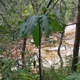 11-17 多年生常绿草本,根茎倒圆锥形,粗3-5(-9)厘米,长5-10厘米,直立。叶丛生,叶柄淡绿色,具白粉,长可达1.5米,下部1/2鞘状,闭合;叶片长圆状心形、卵状心形,长可达1.3米,宽可达1米,有时更大,边缘波状,后裂片圆形,裂弯开展。