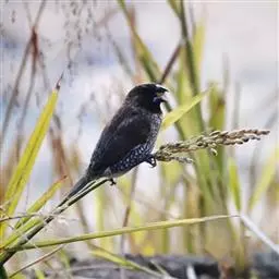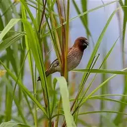 栗腹文鸟:小型鸟类,体长10-12厘米。嘴蓝灰色,基部粗厚,先端尖、呈圆锥状, 脚亦为蓝灰色,整个…
