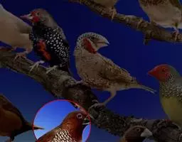 七彩文鸟是梅花雀科、鹦雀属鸟类。头部羽色有黑、红、黄之别。幼鸟体色初期为灰色,下部较淡,…