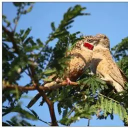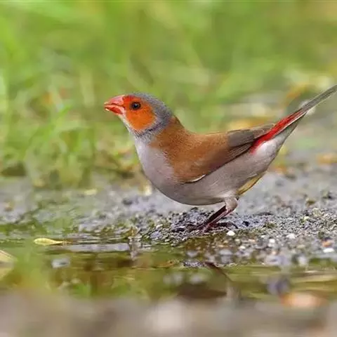 红颊蓝饰雀,是鸟纲雀形目梅花雀科蓝饰雀属的一种,分布于非洲撒哈拉以南的大部分地区。栖息地包括亚热带或热带的(低地)干燥疏灌丛、牧草地、耕地、干燥的稀树草原、亚热带或热带的(低地)干草原和乡村花园。主食草籽,喜爱鸣叫。